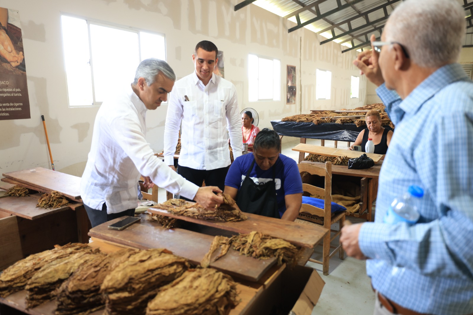 Los funcionarios realizaron un recorrido por las áreas de siembra, procesamiento y curado de tabacos en la institución, donde conocieron las capacidades técnicas, operativas y la forma de elaboración de un cigarro artesanal, elaborado a mano, con hojas de tabaco dominicano.