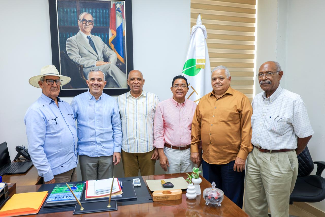 El director Iván Hernández Guzmán, acompañado por el encargado de Investigación, Tirso Ramírez, sostuvo un encuentro en su despacho con el exdirector del INTABACO, César Sandino de Jesús; con Pedro Trinidad Ledesma, director Regional, y Modesto Peña, encargado de la Unidad de Desarrollo Rural (UDR), ambos de la Dirección Regional Norte de Agricultura.